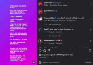 "¿No crees que si pudiera arreglarme, ya lo habría hecho? Sé que estoy roto, sé que tengo problemas de ira." Escribió Bieber en sus redes.Explico que ha pasado años intentando transformarse para poder cumplir las expectativas que los demás han puesto sobre él, sin embargo, asegura que dicho esfuerzo solo lo ha hecho sentir más enojo y cansancio.